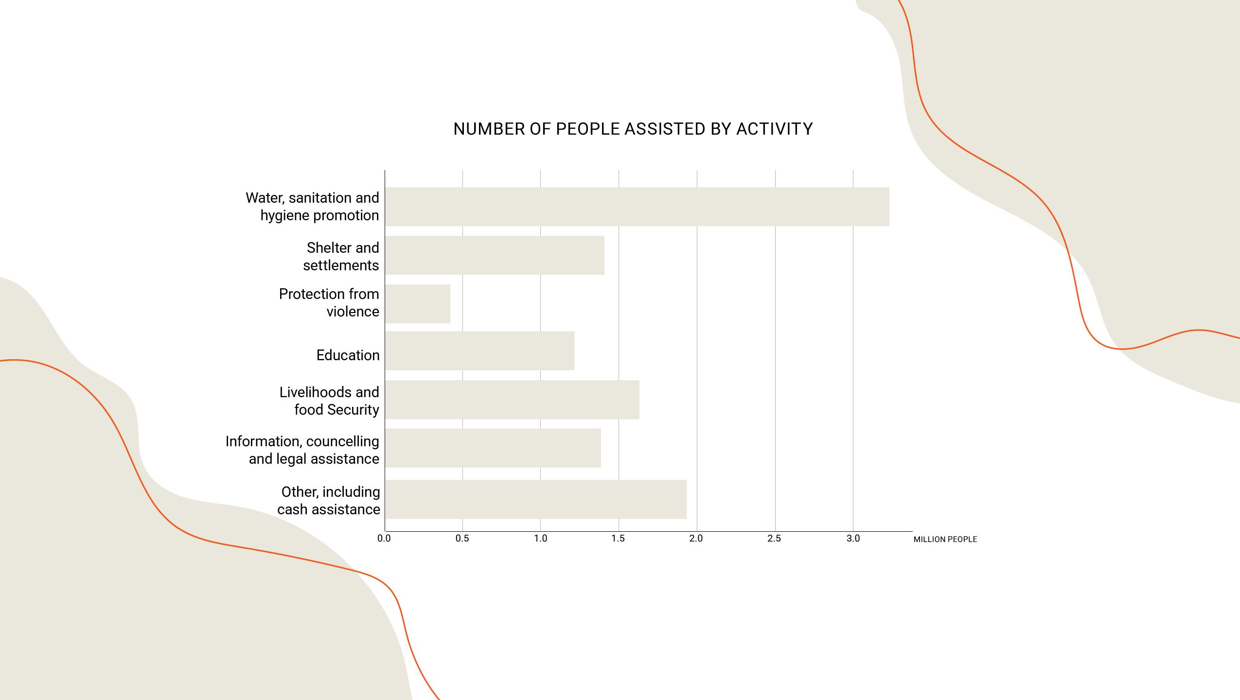 In neighbouring Poland and Moldova, we extended our support to 65,000 more people displaced by the conflict.