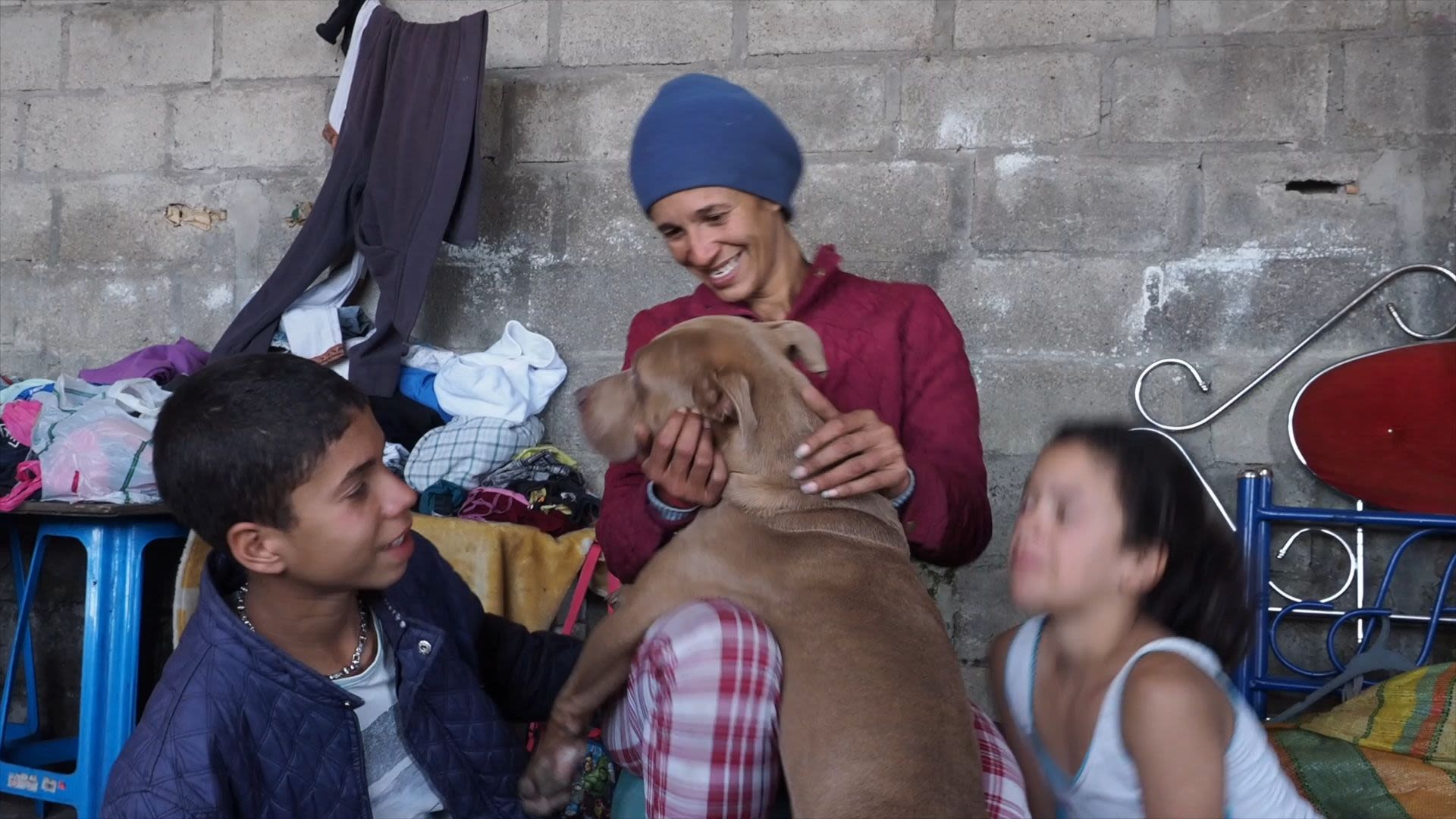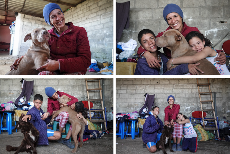As the children play outside, framed by the backdrop of the Pichincha volcano, Cindy’s dog gently licks her face. She reflects on what it’s meant for her to receive help while she’s in a vulnerable situation.