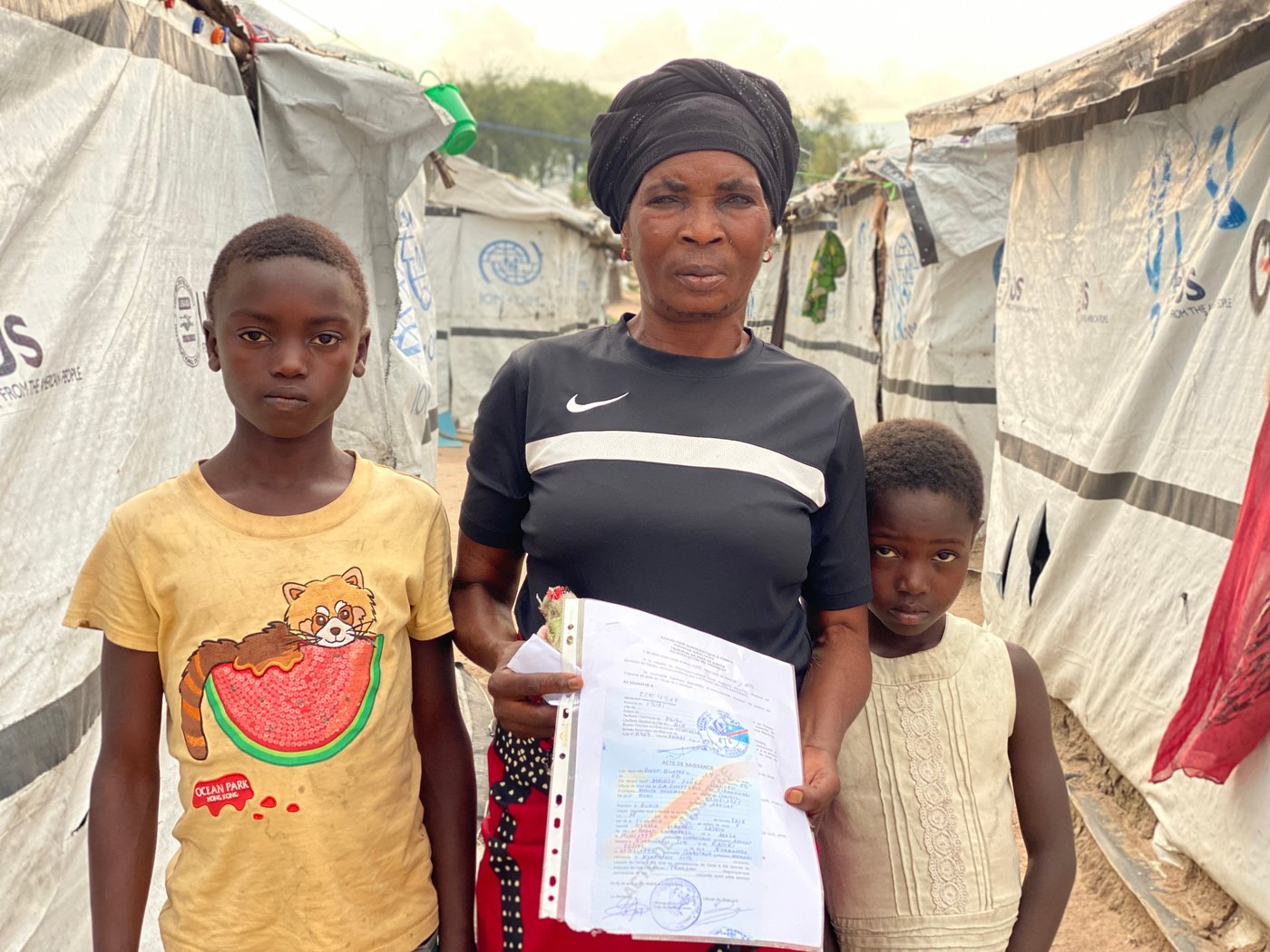 Information sessions, community dialogues and structured awareness sessions also help inform parents about the importance of birth registration. It was during one of these sessions at a displacement site in Tchomia that Germaine, 60, discovered she could register her five children.