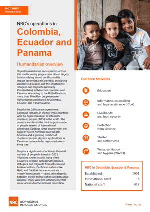 Urgent humanitarian needs persist across this multi-country programme. They are driven by intensifying armed conflict and its impact on civilians in Colombia, escalating violence in Ecuador, and the situation for refugees and migrants (primarily Venezuelans) in these two countries and Panama.