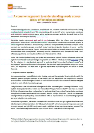 In April, NRC and IMPACT Initiatives shared a joint note calling for the adoption of a standardized approach to understanding the severity of refugees’ needs, and encouraged “alignment of this methodology with the approach used to reprioritize within and across OCHA-led responses”. This note aims to go one step further by outlining how this could be taken forward.