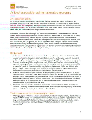 All play important and differentiated roles that are pivotal to ensuring that quality assistance and services are delivered at scale, meet severe needs, support people in hard-to-reach areas, and contribute to local and government-led solutions.