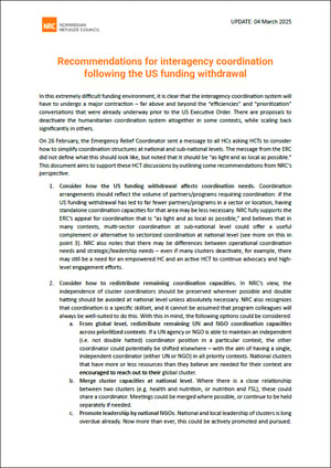 On 26 February, the Emergency Relief Coordinator sent a message to all HCs asking HCTs to consider how to simplify coordination structures at national and sub-national levels. The message from the ERC did not define what this should look like, but noted that it should be “as light and as local as possible”.