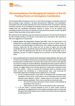 NRC welcomes the fact that these issues have started to be discussed in the EDG and will be tabled at the IASC Principals meeting on 19 February. To help inform these conversations, NRC would like to offer some suggestions on a way forward.