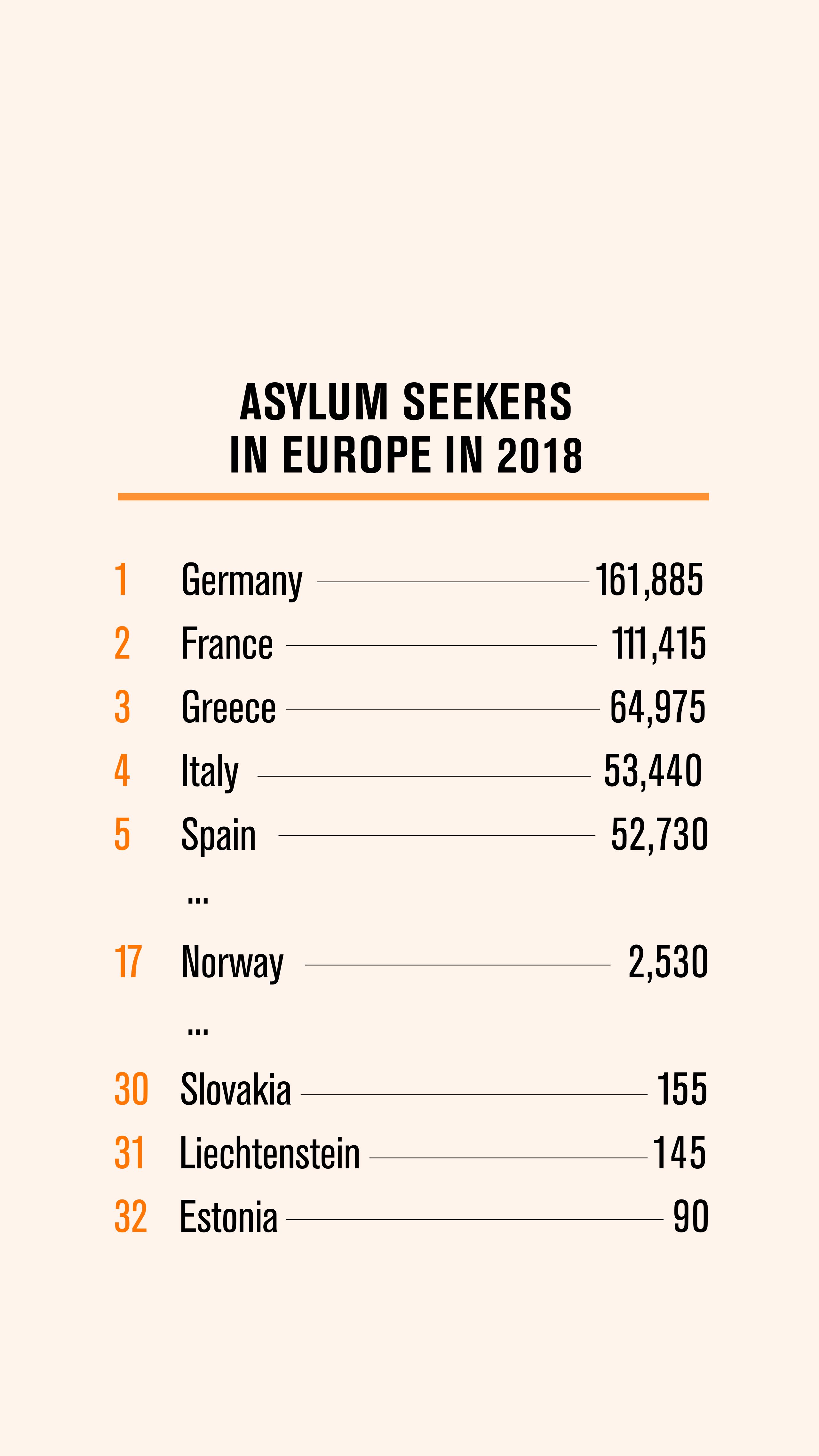 Sweden, which received the second highest number of refugees and migrants in Europe during the 2015 influx, has subsequently seen a significant decline, receiving just 18,000 asylum seekers in 2018. This is due both to restrictions on the rights of asylum seekers and to the fact that border controls have made it more difficult for people to move north in Europe. Nevertheless, Sweden continues to accept far more than the other Nordic countries combined. Norway received only 2,655 asylum seekers in 2018, the lowest number since the mid-1990s.