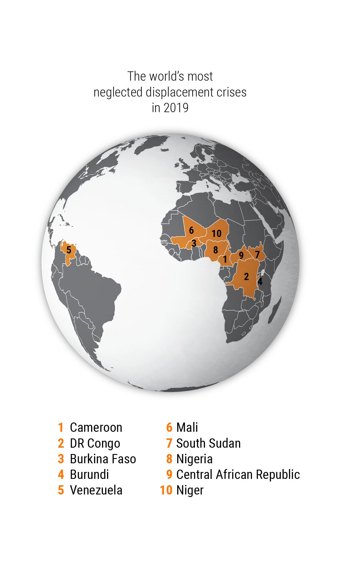 Each year, the Norwegian Refugee Council (NRC) publishes the list of the ten most neglected displacement crises in the world, to shine a spotlight on these forgotten emergencies.