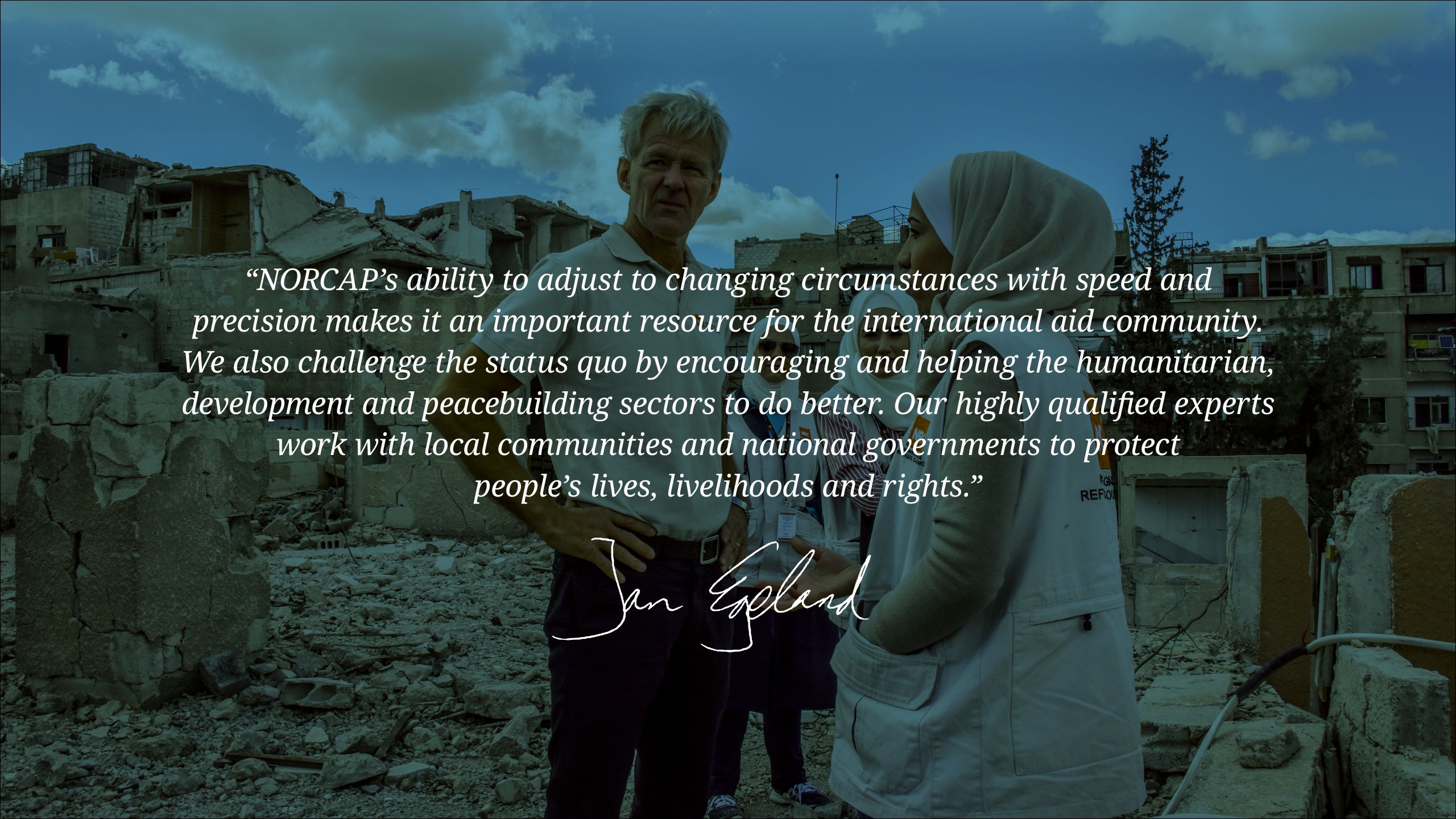 NORCAP is a global provider of expertise that contributes to solving challenges in the humanitarian, development and peacebuilding sectors. Our ultimate aim is always to strengthen the resilience and protect the lives, livelihoods and rights of vulnerable people and communities.