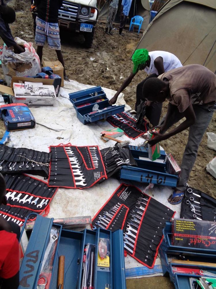 Pibor i Sør-Sudan, juli 2018: Barn som er blitt løslatt fra en væpnet gruppe, bytter ut våpen med verktøy. De har vært på åtte måneders opplæring i reparasjon og vedlikehold av motorer. Foto: Stener Vogt/NORCAP