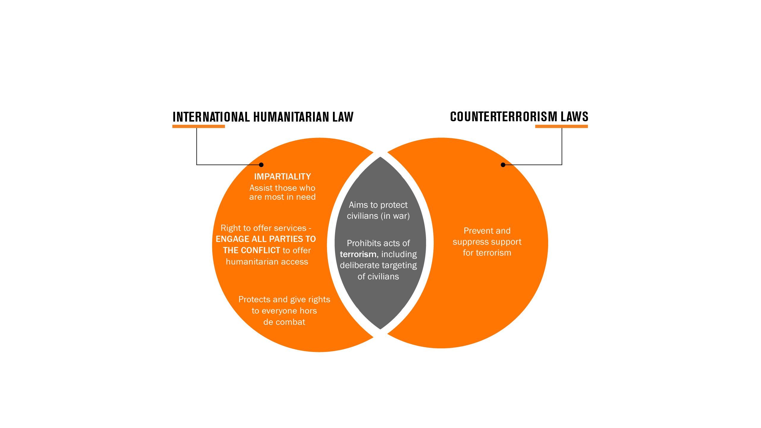 There can be some crossover between counterterrorism measures and International Humanitarian Law (IHL) , with both prohibiting acts of terror and aiming to protect civilians in situations of conflict. However, there are also significant differences.