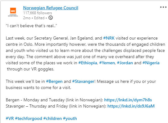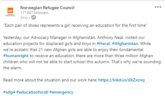 Follow us on LinkedIn to stay updated on corporate-related topics linked to our work for displaced people: