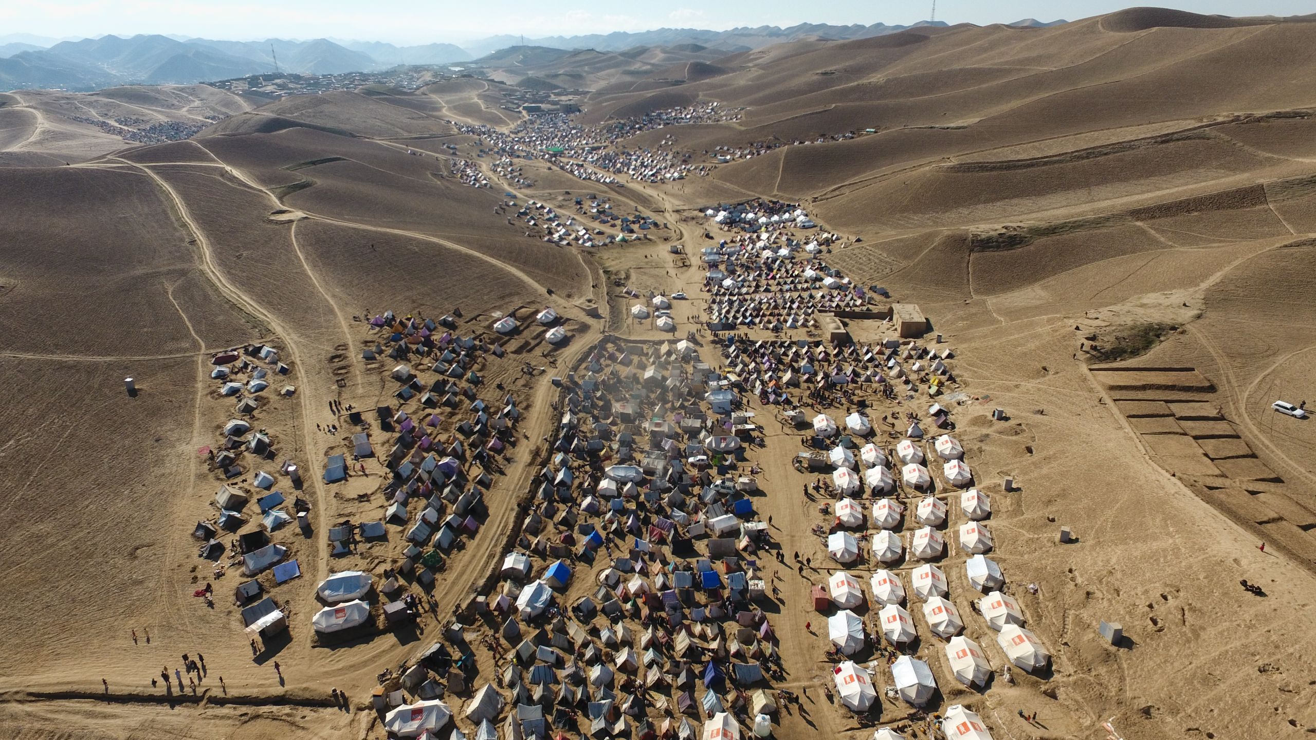 This photo shows the size and scale of a site for displaced people in Badghis in north-west Afghanistan. The photo was taken during NRC’s tent distribution last year, and some of our white and orange family tents are clearly visible in the foreground. Photo: Enayatullah Azad/NRC