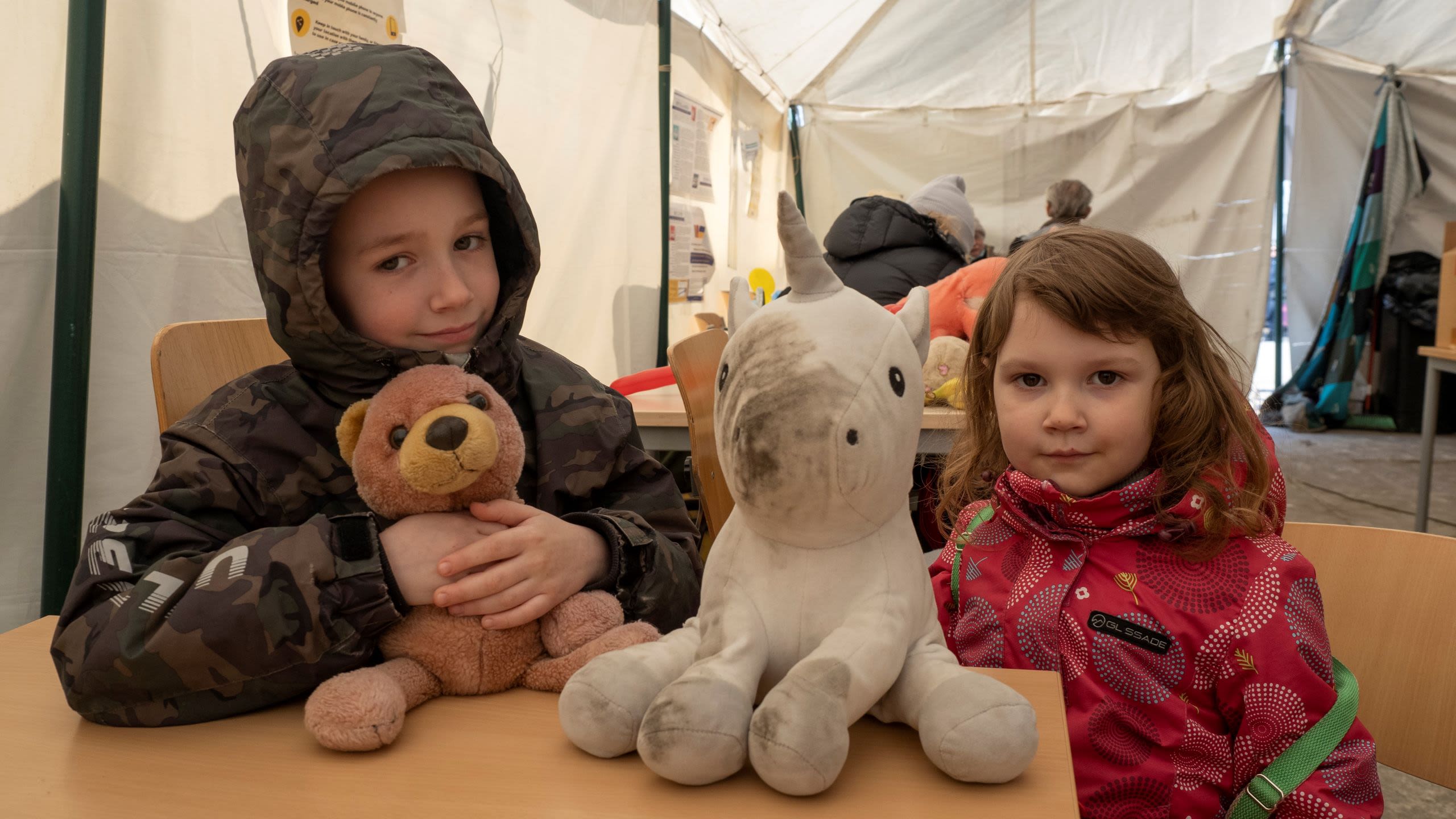 Olya had travelled to the Romanian border with her two children, Makar, 7, and Bogdana, 5. Fatigue and stress mingled with relief in her face, as she rested in one of the heated tents at the border crossing.