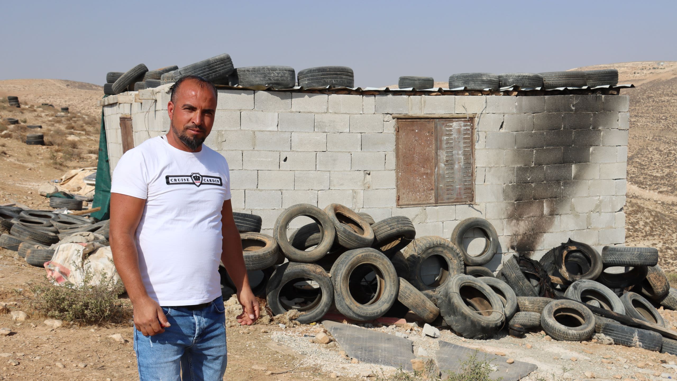 Ashraf Al-Amour, 38, has been living in a cave with his family for years. “When we built residential structures next to the cave, we received demolition orders. But I am challenging it legally,” Al-Amour says.