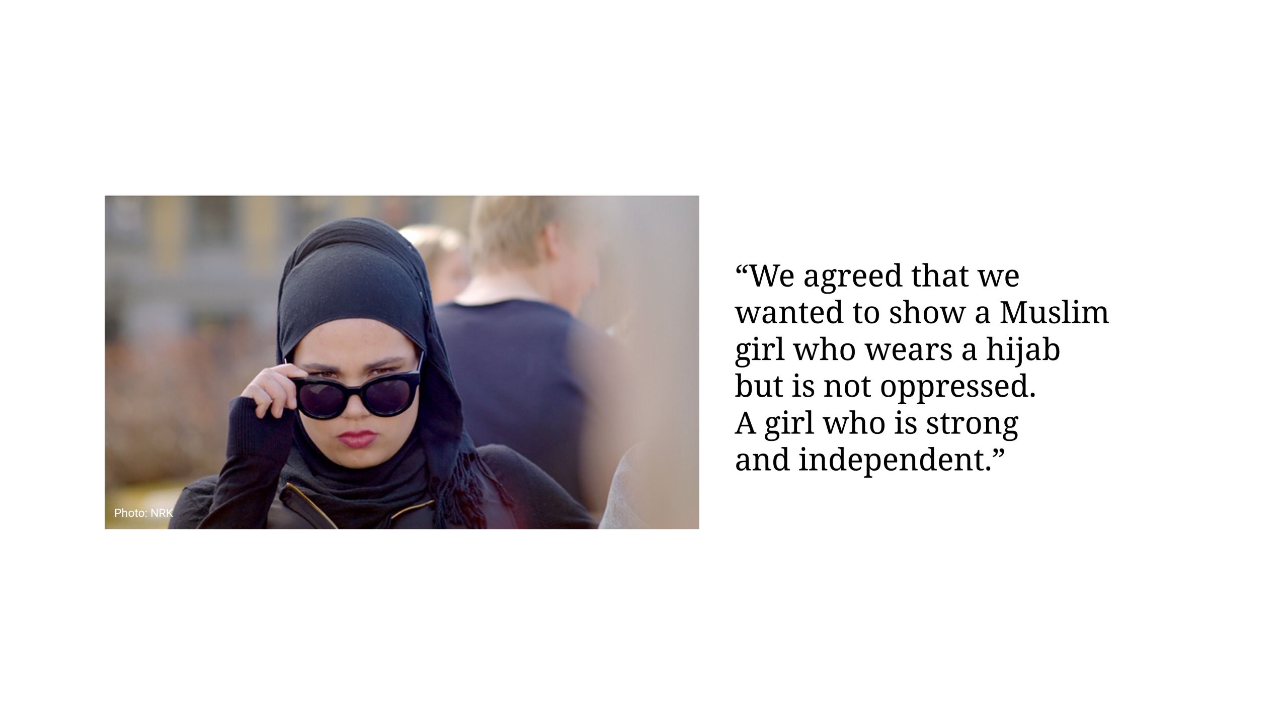 “We agreed that we wanted to show a Muslim girl who wears a hijab but is not oppressed. A girl who is strong and independent.”