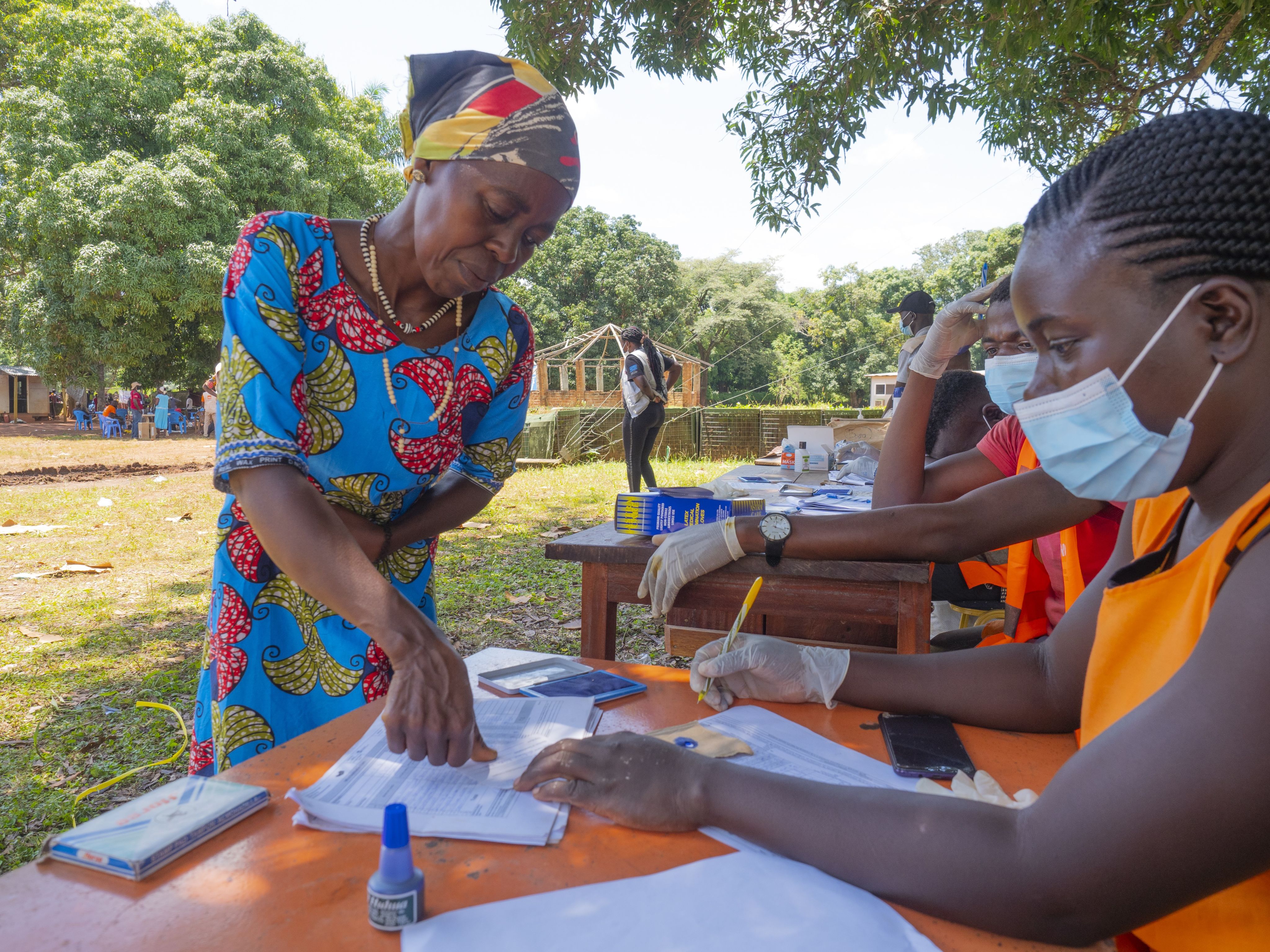 Regina is lining up together with other individuals and heads of households. They are waiting to be registered.
