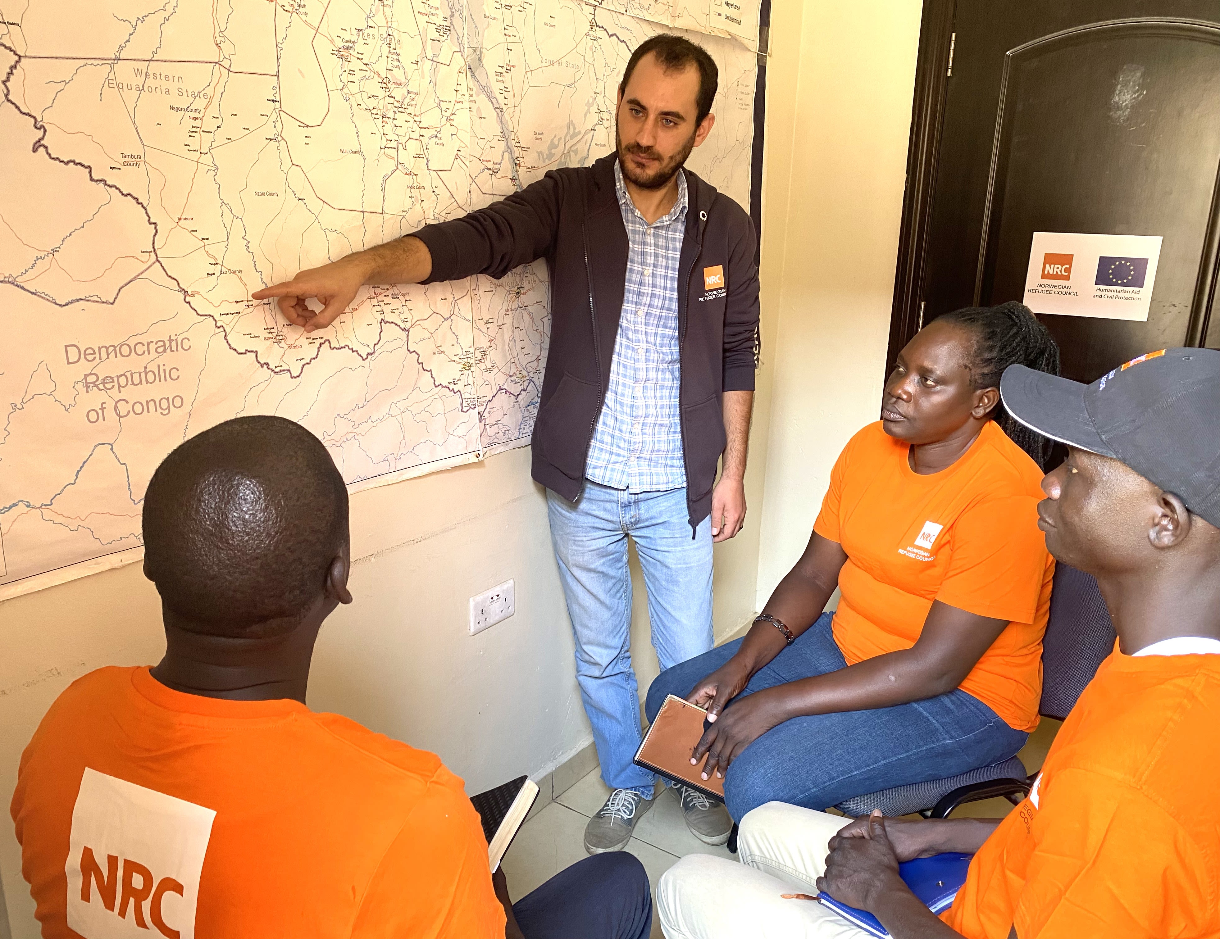 AHMED ALBERAWI, NRC’s emergency response project manager for South Sudan, is briefing the team.