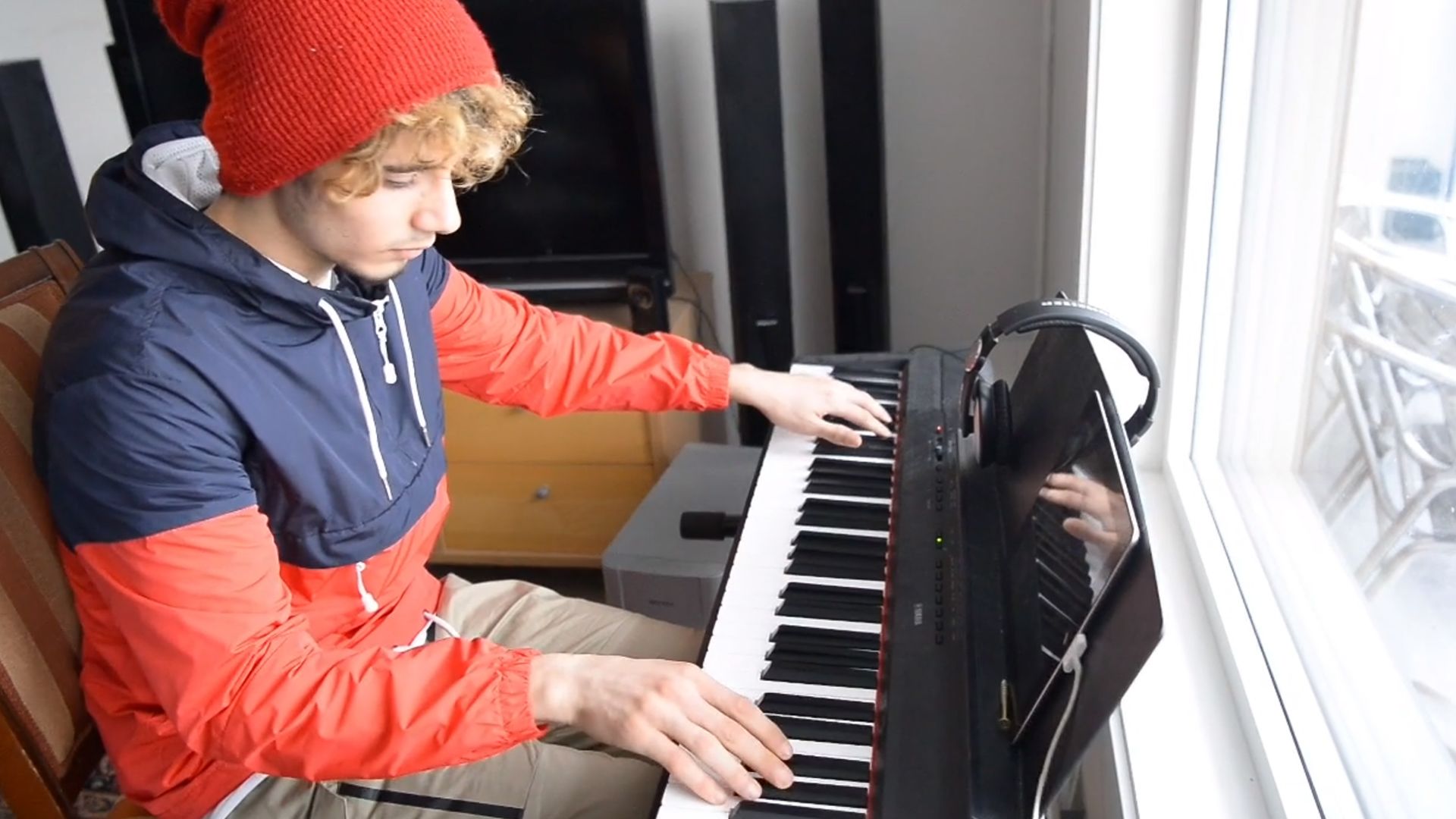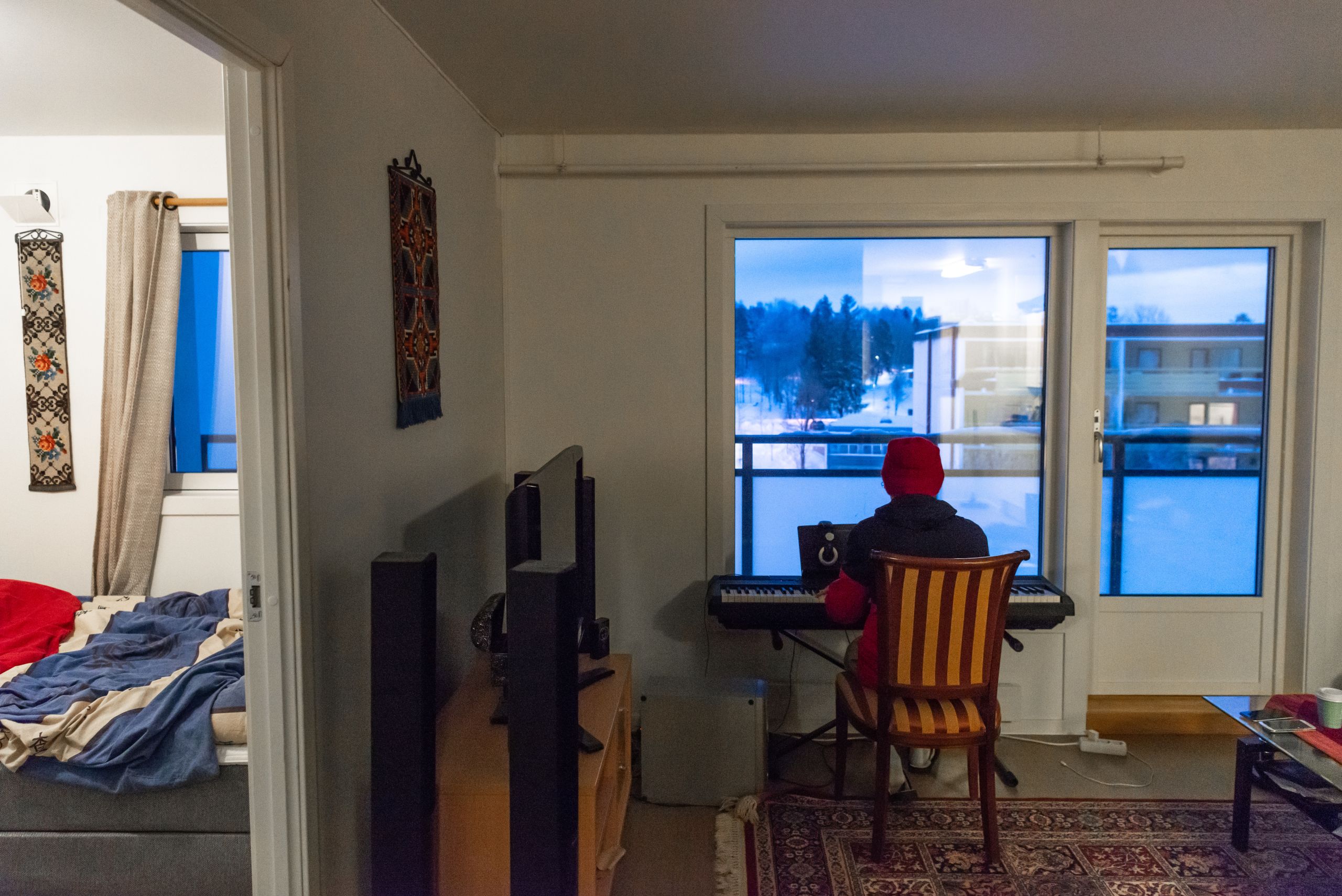 På asylmottaket stod det et gammelt piano, og Mosab lærte seg å spille instrumentet på egenhånd. I dag komponerer han musikk på keyboardet sitt.