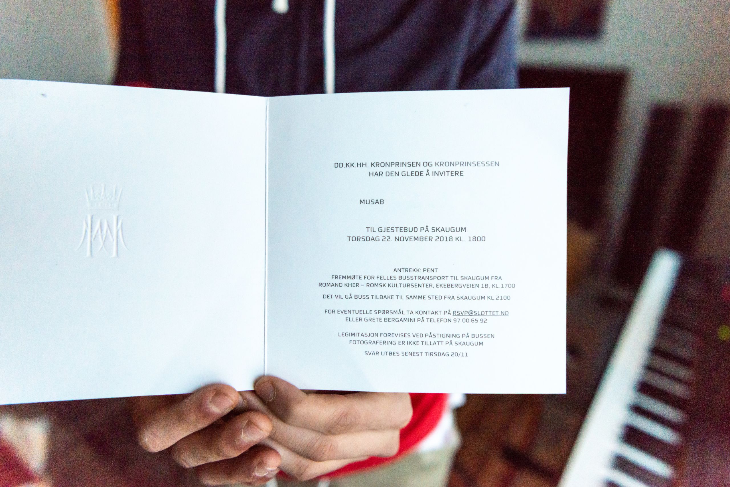 Mosab jobber som frivillig for å hjelpe mennesker i Norge. Invitasjonen til Mosab fra Det Kongelige Slott.