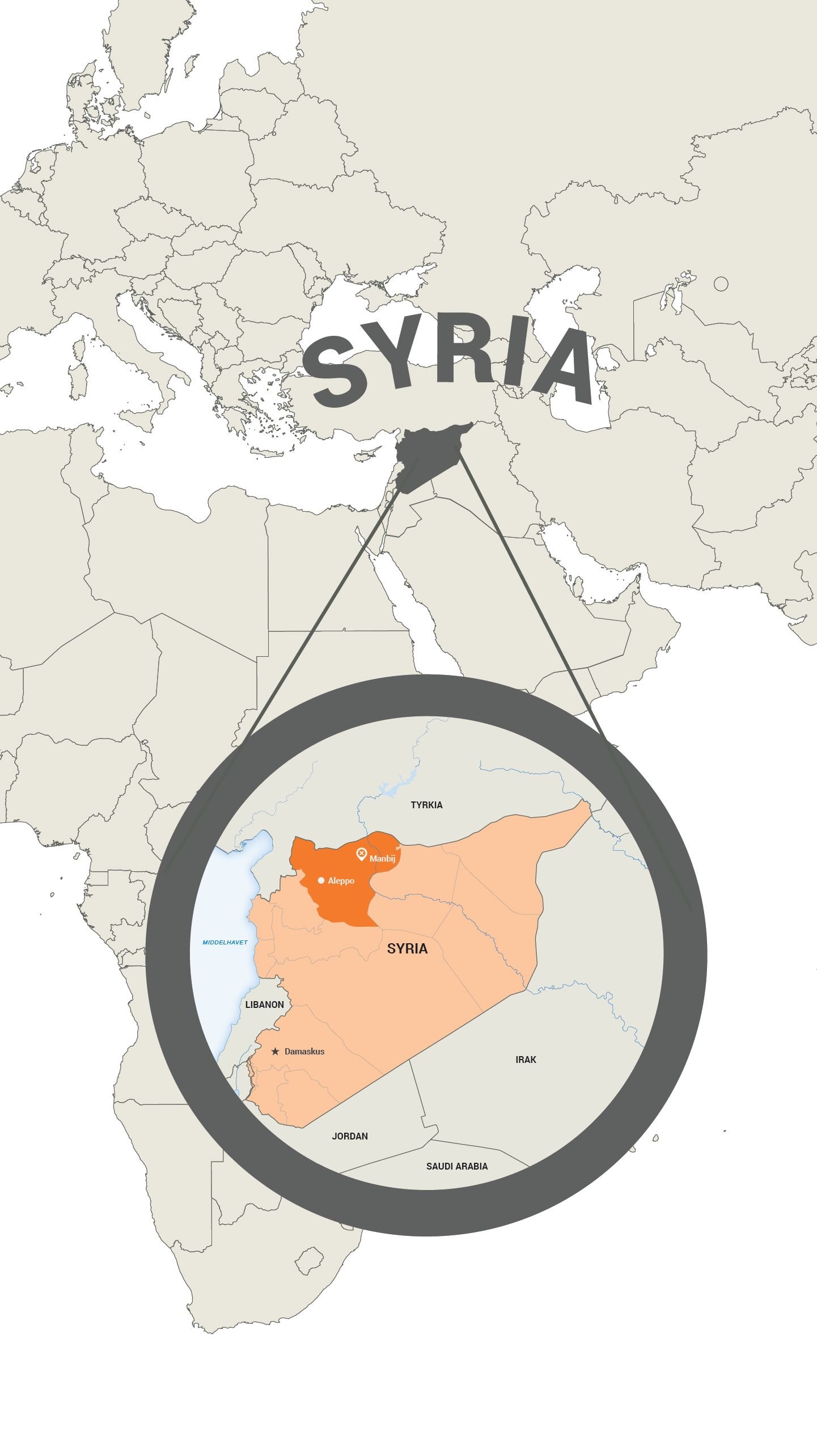 Tyrkia ser på kurder-militsene som terrororganisasjoner. Nå som president Trump har bestemt at USA trekker seg ut av Syria, har kurderne bedt den syriske president Bashar al-Assad, som samarbeider med russerne, om hjelp mot en eventuell tyrkisk invasjon. Det er i dag syriske regjeringssoldater, russiske soldater, tyrkiske soldater og kurdiske militser utenfor Manbij.