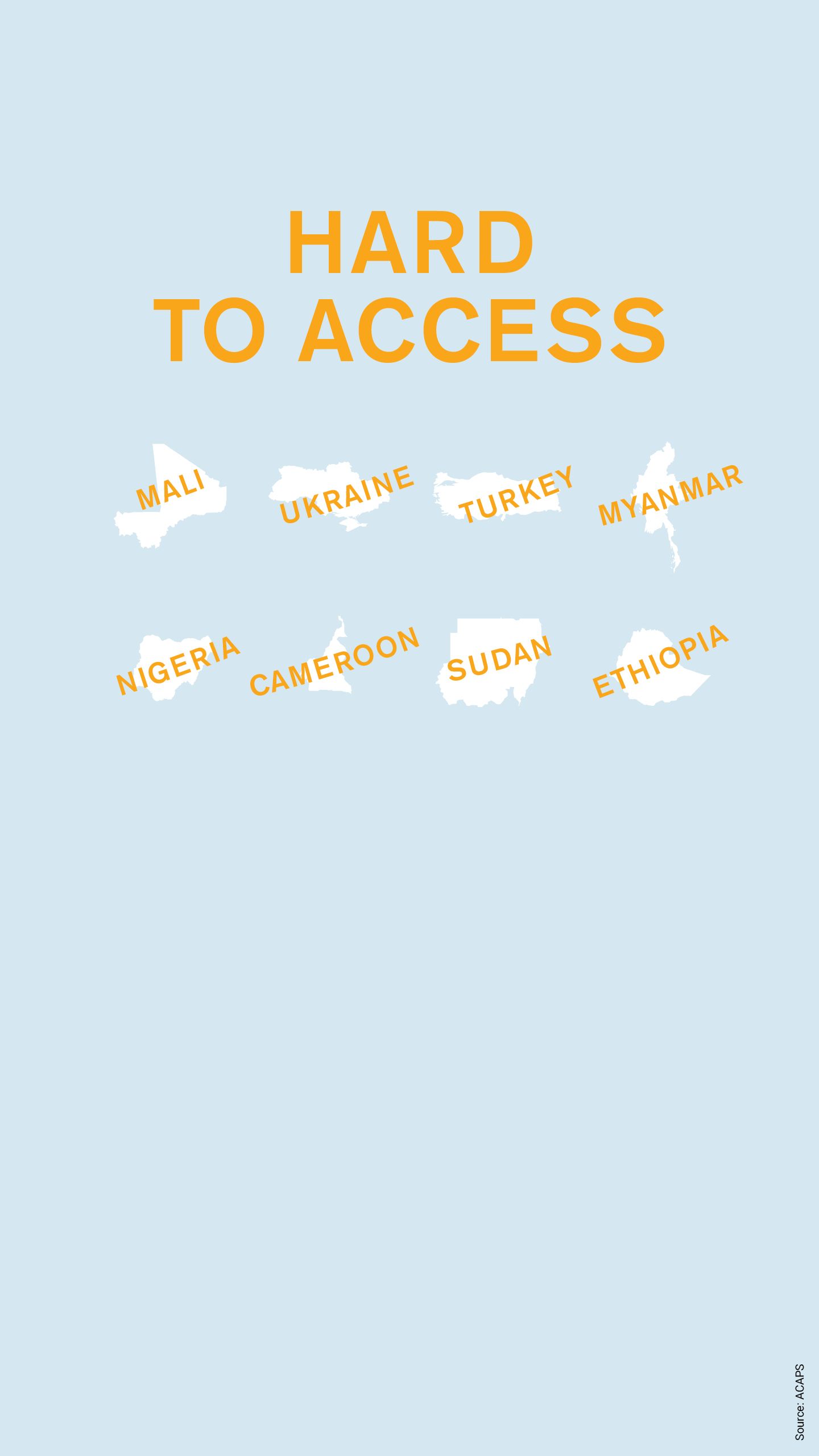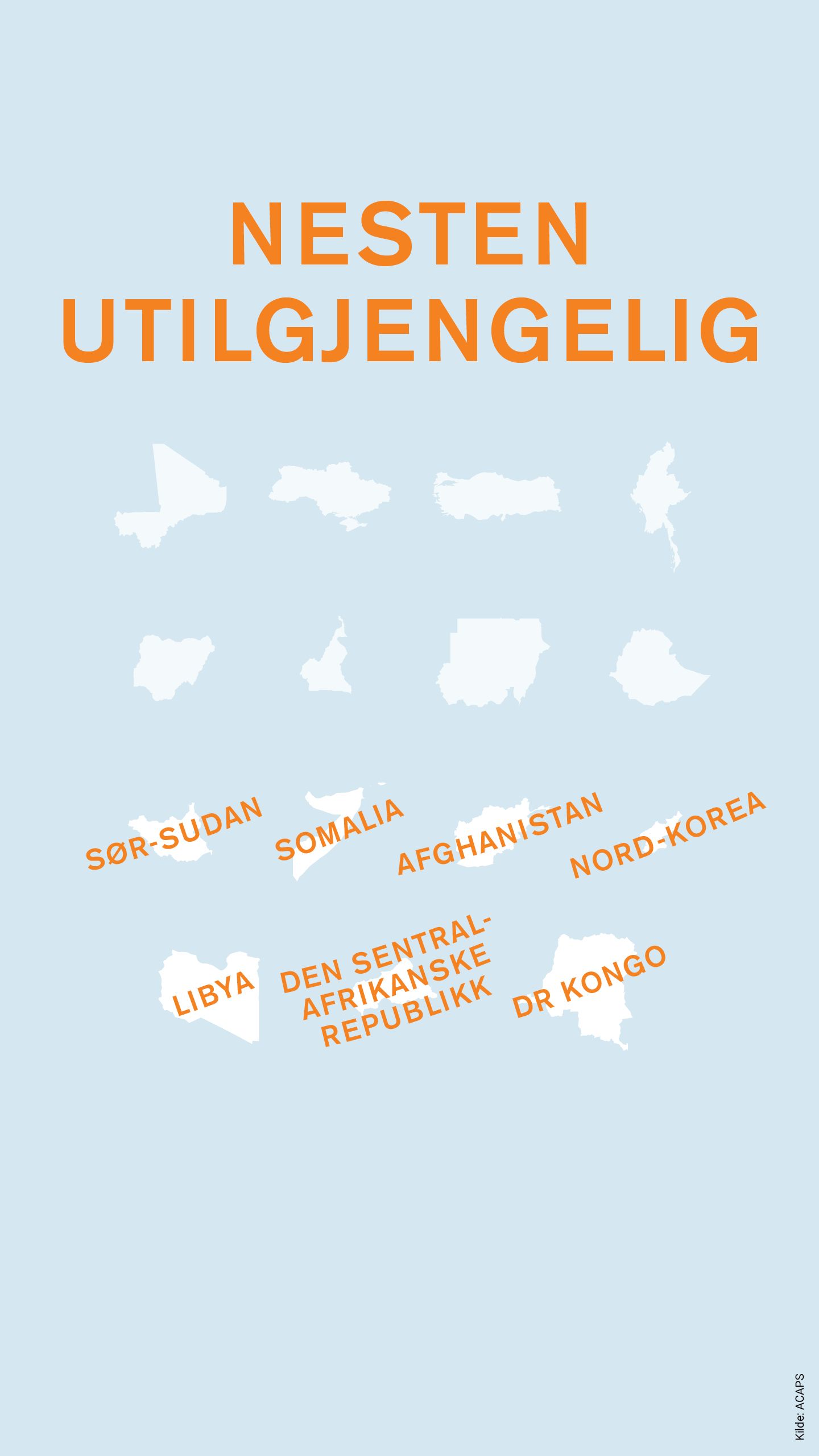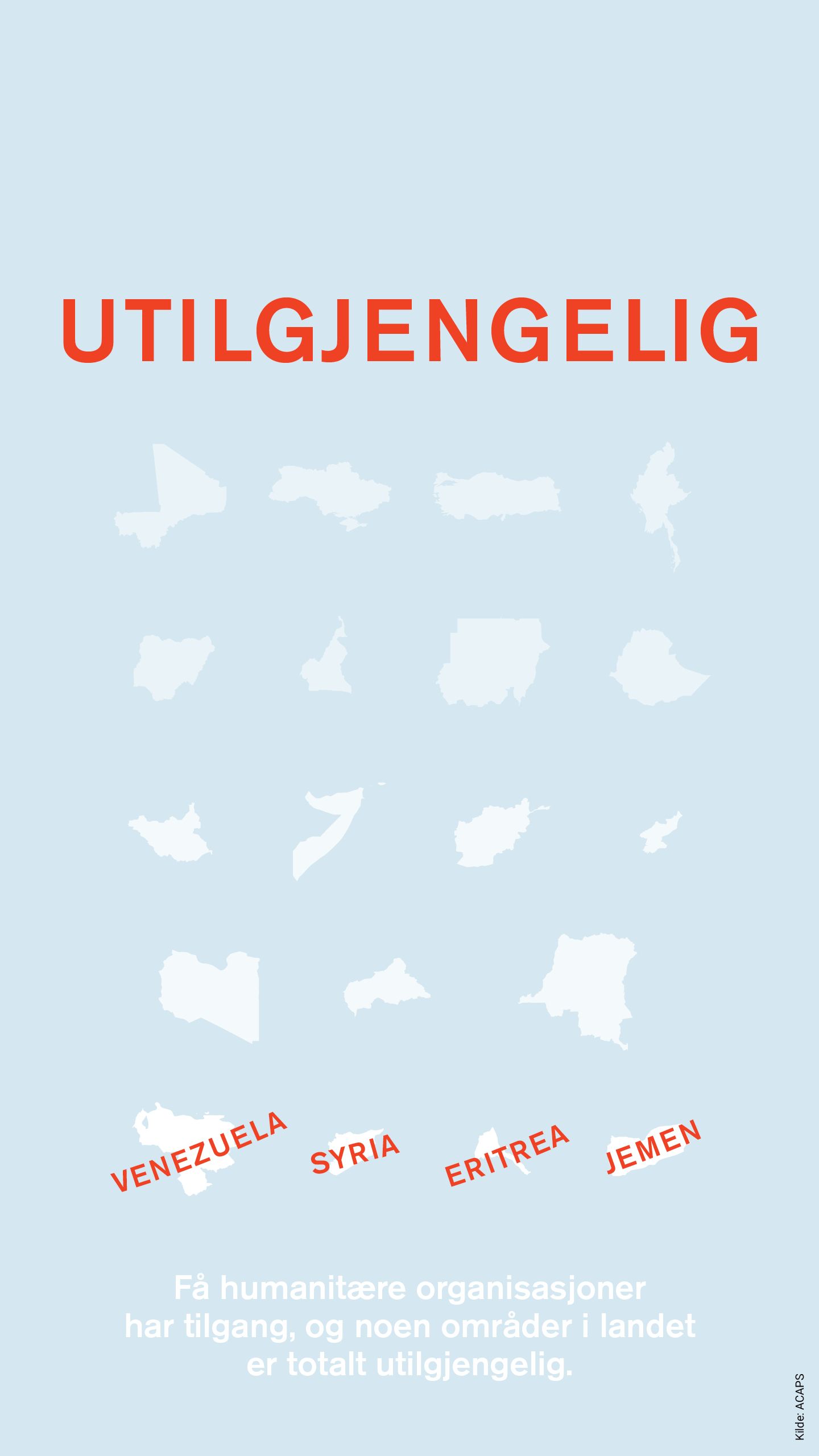 Eritrea, Syria, Venezuela og Jemen er de landene i verden som er vanskeligst å nå, ifølge ACAPS sin oversikt over humanitær tilgang. Noen humanitære aktører er tilstede, men landene er så å si utilgjengelige for de fleste ikke-statlige organisasjoner.