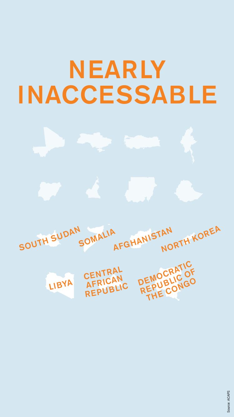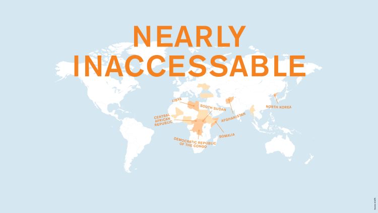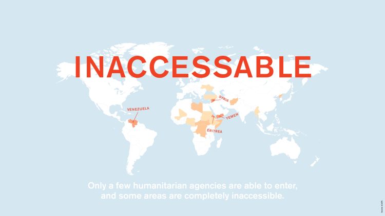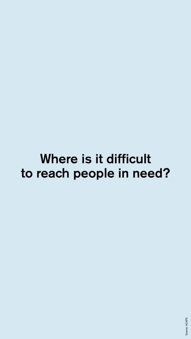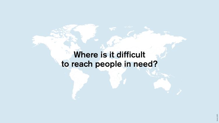 In 2017, 36.4 million people in need did not receive the vital aid they needed. The more difficult it is to reach an area, the less likely people who live there are to receive help from humanitarian agencies. However, it is often in the areas hardest to reach that people need aid the most.