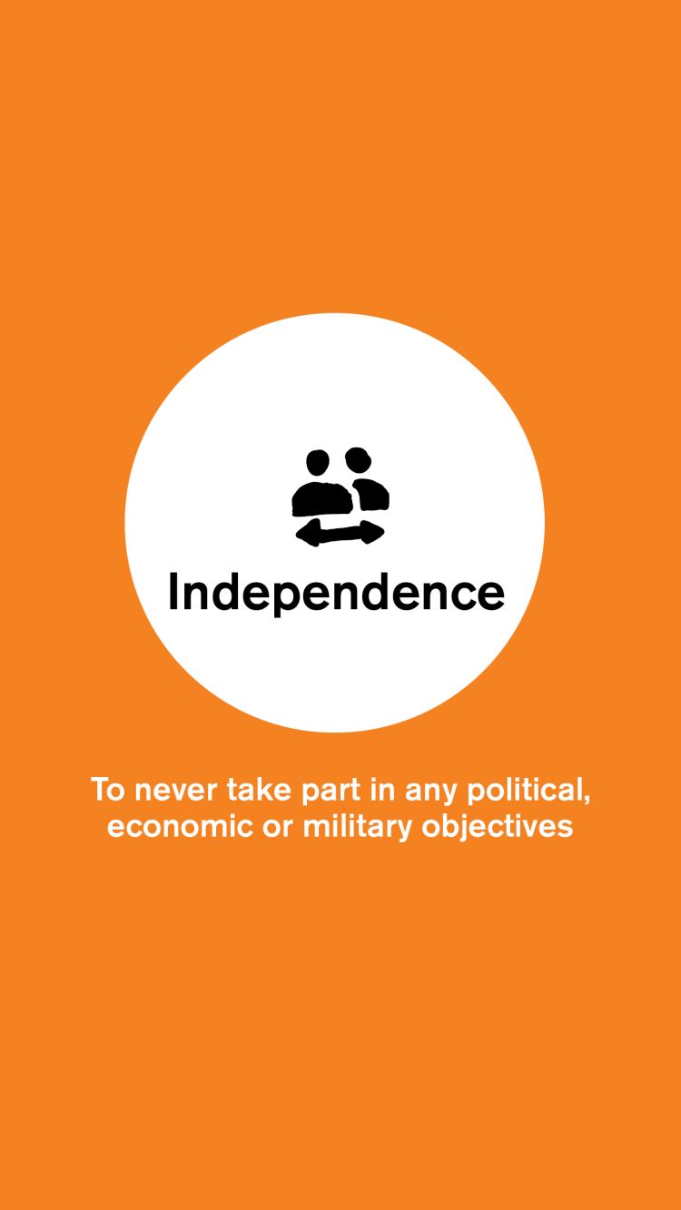 Let's have a look at this example: You want to deliver aid to civilians in an area where armed groups are in charge. The government in the country might not allow you to enter that area without an armed escort. If you choose to enter with the escort, you might no longer be perceived as neutral and independent, thus violating the trust of other armed groups. If you refuse, people will suffer and you can undermine the principle of humanity.